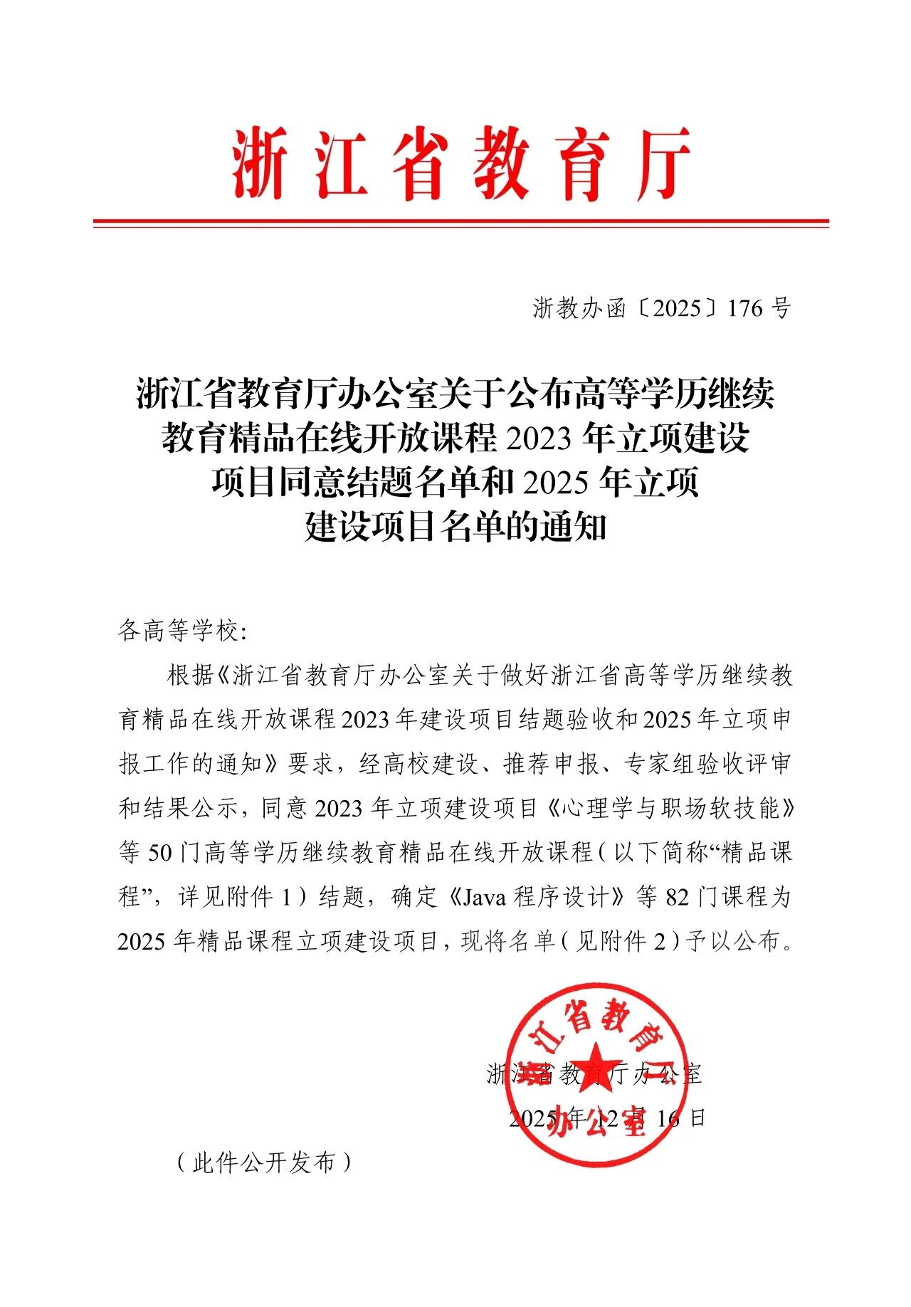 近日,浙江省教育厅发布2025年学历继续教育精品在线开放课程立项建设名单,我部数学教研室宋维副教授领衔申报的《高等数学》课程,凭借深厚的教学积淀、创新的教学设计与鲜明的实践特色成功入选。